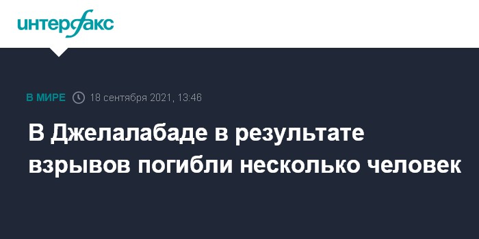 Москва. 18 сентября. INTERFAX.RU - В афганском городе Джелалабад (провинция Нангархар) в субботу прогремела серия взрывов, трое человек погибли, минимум 20 ранены, сообщает Hindustan Times.