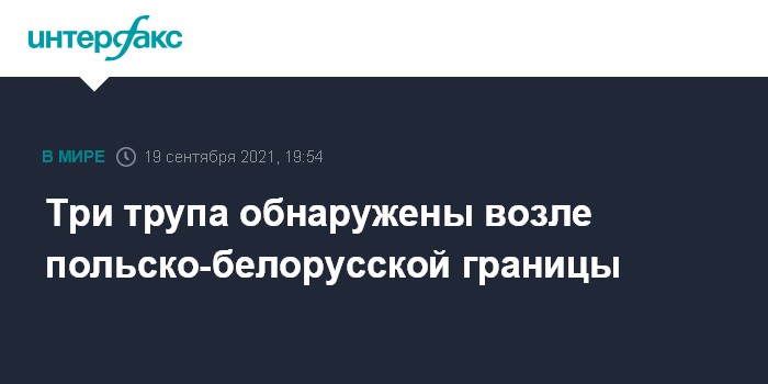 Москва. 19 сентября. INTERFAX.RU - Вблизи польско-белорусской границы найдены тела трех человек, сообщили в польской погранслужбе в воскресенье в твиттере.
