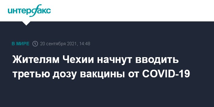 Москва. 20 сентября. INTERFAX.RU - В Чехии начнут вводить жителям третью дозу вакцины от коронавируса COVID-19 на фоне растущего числа заболеваний, сообщает в понедельник агентство Associated Press.