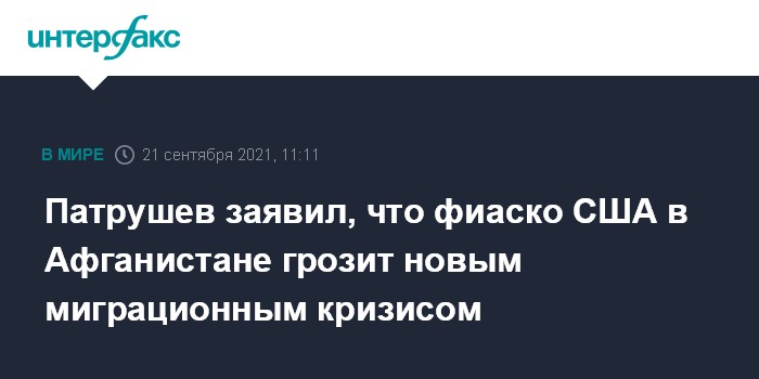"После американского фиаско в Афганистане формируются условия для нового миграционного кризиса, еще более тяжелого, чем в 2015 году", - заявил Патрушев в интервью газете "Аргументы и факты".