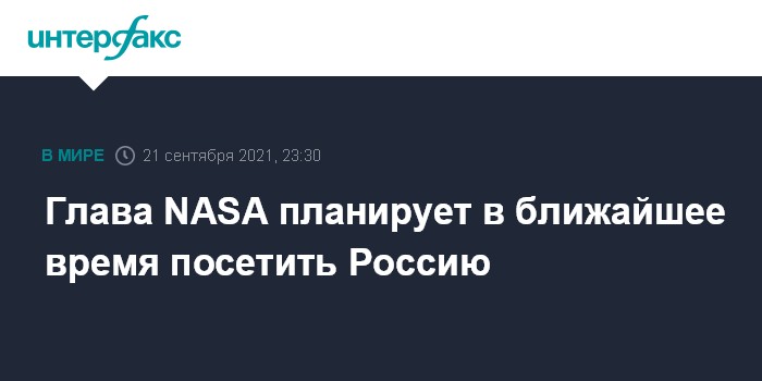 Москва. 21 сентября. INTERFAX.RU - Администратор Национального управления по аэронавтике и исследованию космического пространства (NASA) Билл Нельсон заявил о планах посетить Россию в ближайшее время, следует из трансляции NASA.