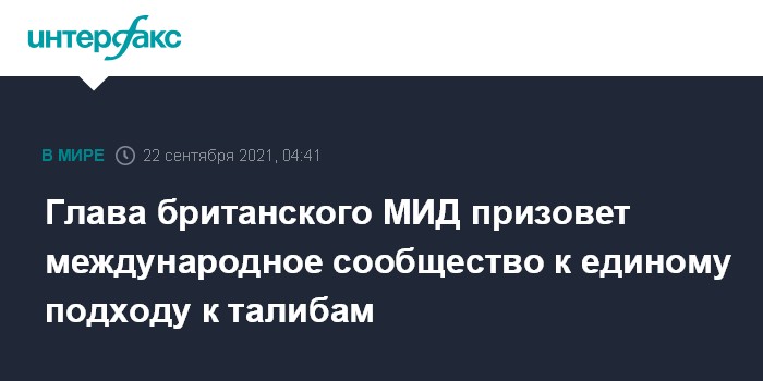 Канцелярия британского МИД сообщила, что Трасс заявит: "Если мы не хотим, чтобы Афганистан превратился в убежище для глобального террора, то международное сообщество, включая Россию и Китай, должно действовать как единое целое в своем взаимодействии с "Талибан".