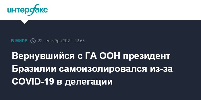 Бразильский санитарный регулятор Anvisa рекомендовал, чтобы вся президентская делегация, присутствовавшая на ГА ООН, оставалась в изоляции в течение 14 дней и проходила дополнительные тесты на COVID-19.