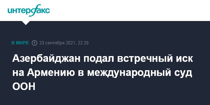 Москва. 23 сентября. INTERFAX.RU - Азербайджан подал в Международный суд ООН иск против Армении за систематические нарушения Ереваном "Международной конвенции о ликвидации всех форм расовой дискриминации".