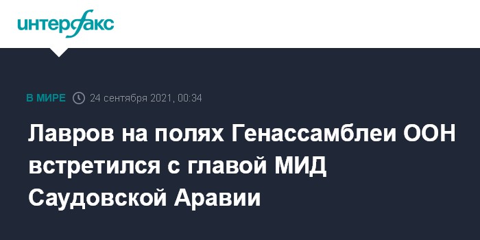 Москва. 24 сентября. INTERFAX.RU - Глава МИД России Сергей Лавров провел на полях 76-й сессии Генеральной Ассамблеи ООН переговоры с министром иностранных дел Саудовской Аравии Фейсалом бен Фархан Аль Саудом.