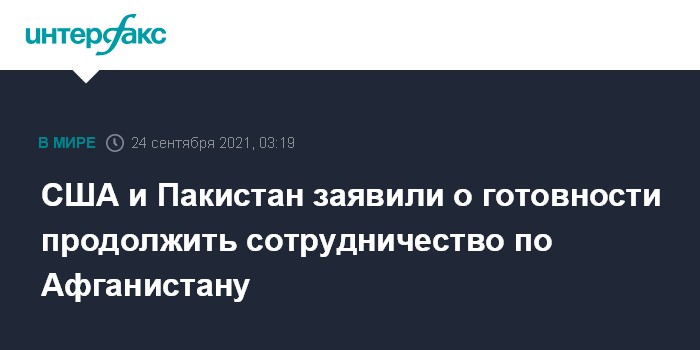 Москва. 24 сентября. INTERFAX.RU - Вопрос Афганистана продолжает оставаться в центре внимания в сфере сотрудничества Вашингтона и Исламабада, заявили перед встречей в рамках сессии Генассамблеи ООН госсекретарь США Энтони Блинкен и министр иностранных дел Пакистана Шах Мехмуд Куреши, сообщил американский госдепартамент.