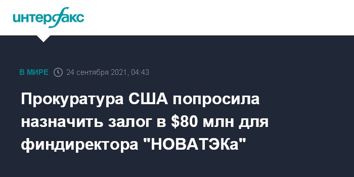 Прокуратура США попросила назначить залог в $80 млн для финдиректора "НОВАТЭКа"