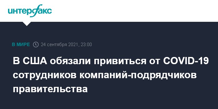 В сентябре президент США Джо Байден объявил о новых правилах вакцинации для федеральных служащих, крупных работодателей и медицинского персонала в попытке сдержать последний всплеск распространения COVID-19 в стране. Байден в телеобращении к нации сообщил, что подписал распоряжение, требующее, чтобы все государственные служащие были вакцинированы против COVID-19. Это же требование применимо к сотрудникам компаний-подрядчиков федерального правительства.