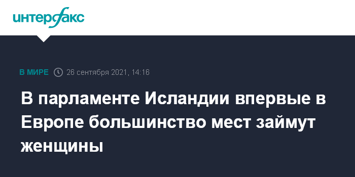 Москва. 26 сентября. INTERFAX.RU - Женщин-депутатов в парламенте Исландии по итогам прошедших накануне всеобщих выборов окажется больше, нежели мужчин, что является уникальным случаем в современной истории Европы, сообщают в воскресенье западные СМИ.