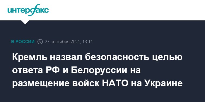 Москва. 27 сентября. INTERFAX.RU - В Кремле заявляют, что совместные ответные действия Москвы и Минска на размещение войск НАТО на Украине должны обеспечить безопасность как России, так и Белоруссии.