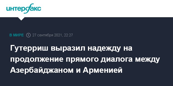 Гутерриш выразил надежду на продолжение прямого диалога между Азербайджаном и Арменией