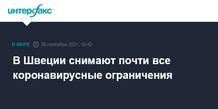 Москва. 29 сентября. INTERFAX.RU - В Швеции со среды отменяют почти все меры, введенные из-за пандемии коронавируса COVID-19, в частности теперь можно без ограничений посещать кафе, рестораны и общественные мероприятия, сообщает издание The Local.