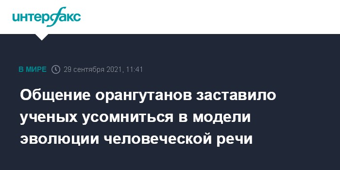 Москва. 29 сентября. INTERFAX.RU - Ученые Уорикского университета (Великобритания) поставили под сомнение существующую теорию эволюции человеческого языка, изучив сигналы, которые издают орангутаны. Об этом сообщает портал научной информации Phys.org.