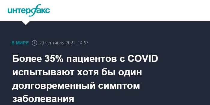 Москва. 29 сентября. INTERFAX.RU - Более трети заболевших коронавирусом COVID-19 имели как минимум один долгосрочный симптом в течение трех-шести месяцев после заражения инфекцией, свидетельствуют данные исследования Оксфордского университета.