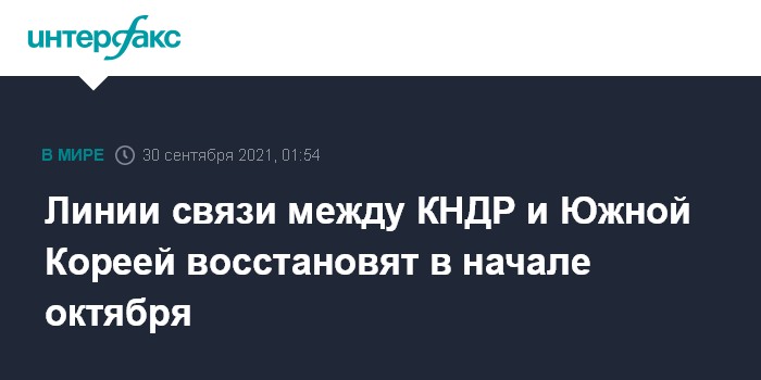 Линии связи между КНДР и Южной Кореей восстановят в начале октября