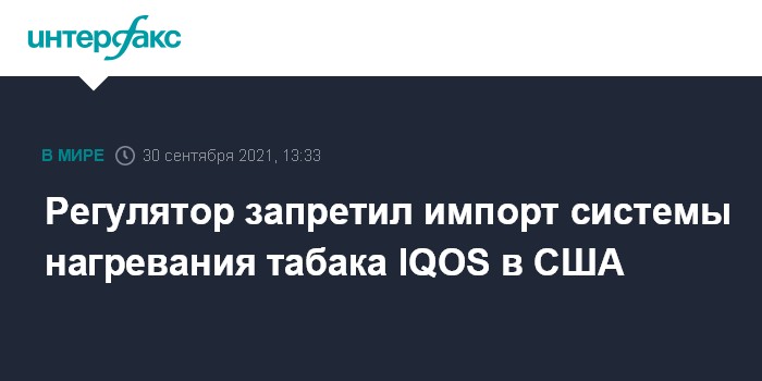 Москва. 30 сентября. INTERFAX.RU - Altria Group Inc и Philip Morris International Inc должны приостановить импорт и продажу систем нагревания табака IQOS, постановила Комиссия по международной торговле (ITC) США в рамках дела о патентах, инициированного конкурентом компаний R.J Reynolds Tobacco Co, пишет газета The Wall Street Journal.