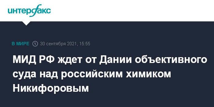 МИД РФ ждет от Дании объективного суда над российским химиком Никифоровым