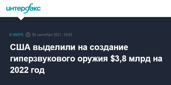 На разработку и развертывание систем гиперзвукового оружия в 2022 финансовом году администрация президента США Джо Байдена выделила $3,8 млрд.