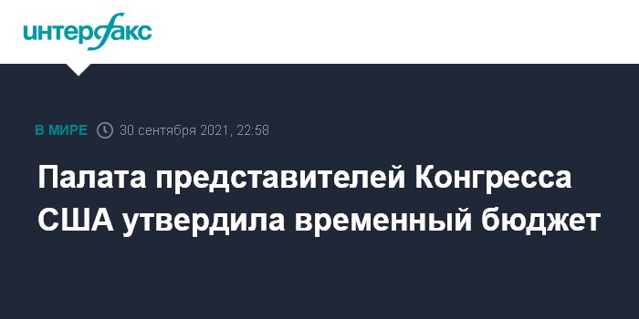 Москва. 30 сентября. INTERFAX.RU - Американские конгрессмены в Палате представителей в четверг утвердили временный бюджет США на 2022 финансовый год, таким образом он отправляется на подпись к президенту Джо Байдену.