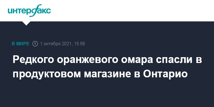 Москва. 1 октября. INTERFAX.RU - Омара редкого оранжевого окраса нашли в продуктовом магазине в муниципалитете Дарем канадской провинции Онтарио.