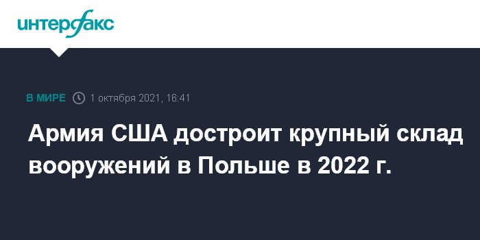 Москва. 1 октября. INTERFAX.RU - Сооружение крупного американского склада для вооружений и военной техники под польским селом Повидзе будет завершено в 2022 году, сообщило командование армии США в Европе.