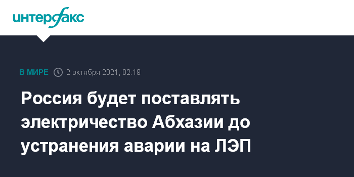 Москва. 2 октября. INTERFAX.RU - До устранения последствий аварии на линии электропередач в Очамчирском районе Абхазии электроэнергия в республику поставляется из России, сообщает пресс-служба абхазского предприятия "Черноморэнерго".