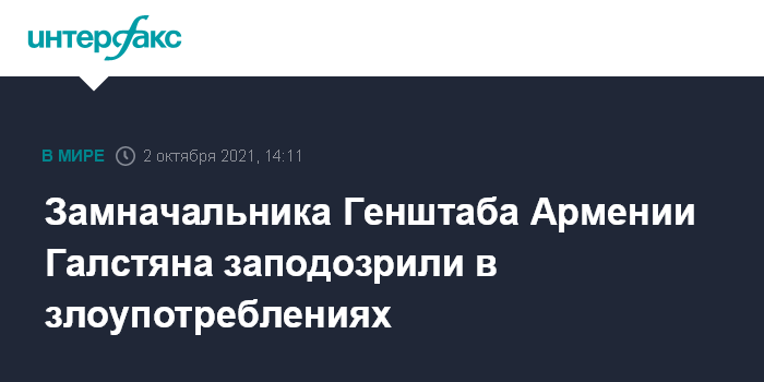 Замначальника Генштаба Армении Галстяна заподозрили в злоупотреблениях