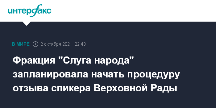 "На фракции "Слуга народа" обсудили вопрос отставки спикера Верховной Рады Дмитрия Разумкова. Путем голосования депутатами фракции принято решение с понедельника начать процедуру отзыва председателя Верховной Рады Украины от занимаемой должности", - написала она в своём телеграмм-канале.