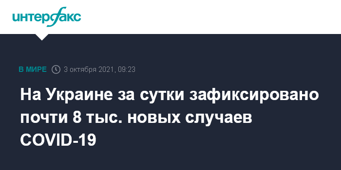 Москва. 3 октября. INTERFAX.RU - На Украине по состоянию на утро воскресенья зафиксировано 7 967 новых случаев заболевания COVID-19, сообщила пресс-служба министерства здравоохранения Украины.