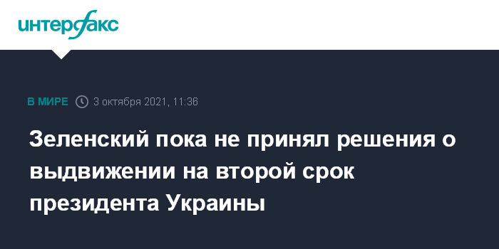 Москва. 3 октября. INTERFAX.RU - Президент Украины Владимир Зеленский заявил, что еще не решил, будет ли баллотироваться на второй срок.