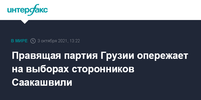 Москва. 3 октября. INTERFAX.RU - По итогам подсчета ЦИК Грузии результатов голосования на местных выборах на 99,92% избирательных участках, правящая партия "Грузинская мечта" убедительно лидирует.