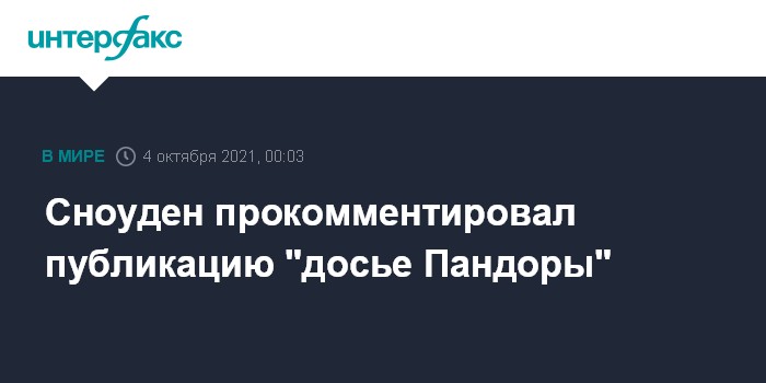 Москва. 3 октября. INTERFAX.RU - Бывший сотрудник ЦРУ Эдвард Сноуден прокомментировал публикацию международным консорциумом журналистов (ICIJ) "досье Пандоры" (Pandora Papers). Свой пост Сноуден опубликовал в Twitter.