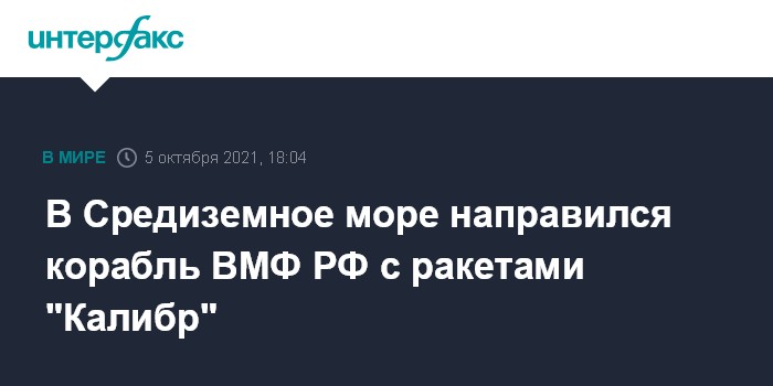 Москва. 5 октября. INTERFAX.RU - Черноморский флот России направил малый ракетный корабль (МРК) "Вышний Волочёк" в Средиземное море, сообщила пресс-служба флот.