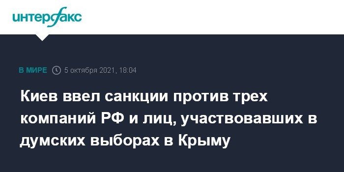 Киев ввел санкции против трех компаний РФ и лиц, участвовавших в думских выборах в Крыму