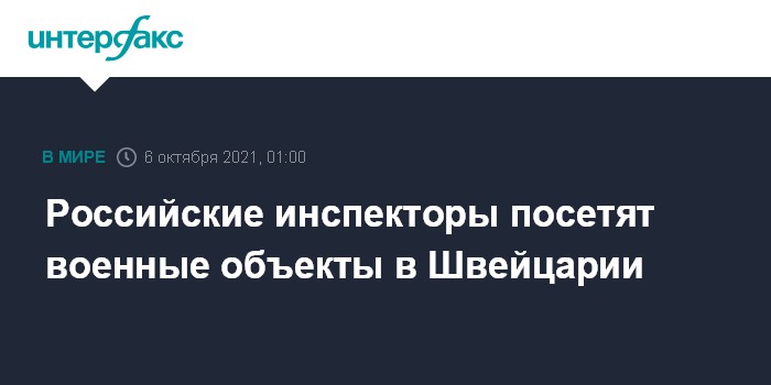 Москва. 6 октября. INTERFAX.RU - Российская группа инспекторов в период с 6 по 7 октября посетит военные объекты на территории Швейцарии, сообщило Минобороны РФ.