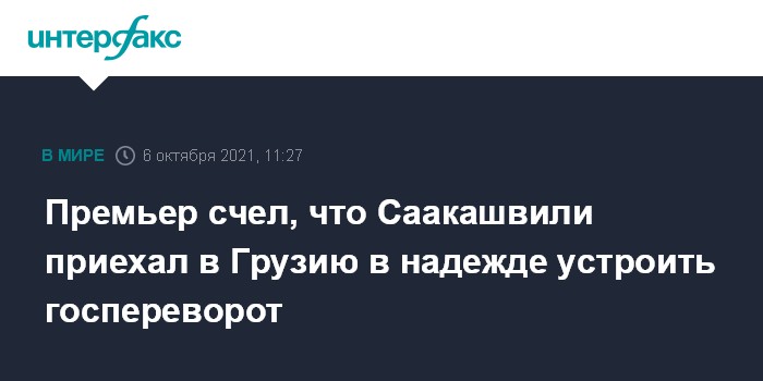 Москва. 6 октября. INTERFAX.RU - Премьер-министр Грузии Ираклий Гарибашвили объяснил тайный приезд экс-президента Михаила Саакашвили в страну его намерением совершить государственный переворот.