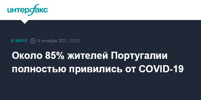 Около 85% жителей Португалии полностью привились от COVID-19