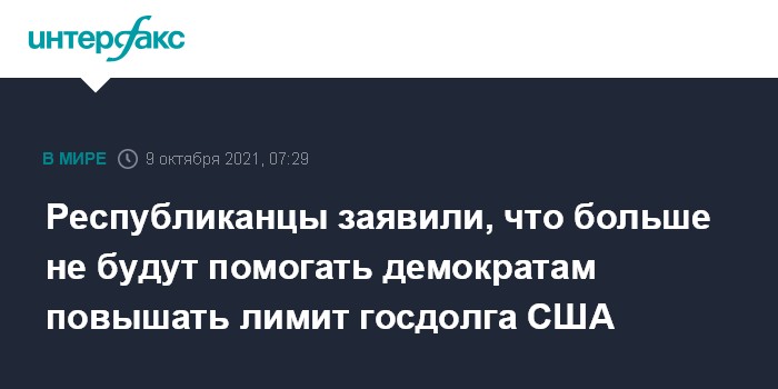 Республиканцы заявили, что больше не будут помогать демократам повышать лимит госдолга США