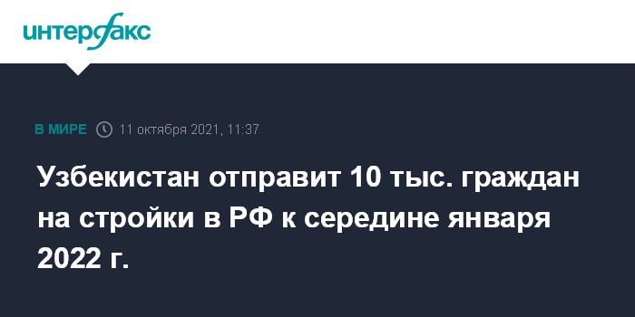 Узбекистан отправит 10 тыс. граждан на стройки в РФ к середине января 2022 г.