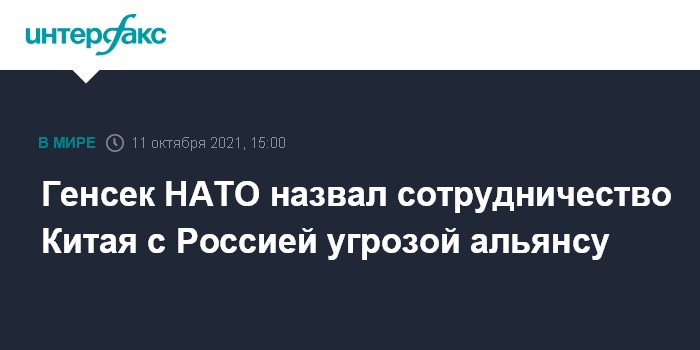Москва. 11 октября. INTERFAX.RU - Быстрый рост Китая, особенно в сфере экономики, а также укрепление его сотрудничества взаимодействия с Россией представляют угрозу для Североатлантического альянса, заявил пресс-конференции на Парламентской ассамблее НАТО в Лиссабоне генсек альянса Йенс Столтенберг.