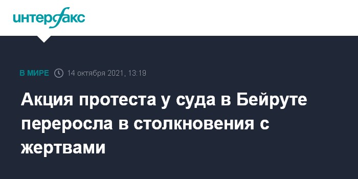 Москва. 14 октября. INTERFAX.RU - Акция протеста у дворца правосудия в ливанском Бейруте, организованная шиитской группировкой "Хезболла" и ее союзниками, в четверг привела к столкновениям, жертвами которых стали не менее двух человек, сообщил телеканал "Аль-Арабийя".