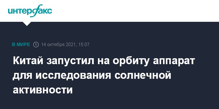 Москва. 14 октября. INTERFAX.RU - Китай успешно запустил спутниковую платформу для исследования солнечной активности Chinese Н-alpha Solar Explorer (CHASE) на солнечно-синхронную орбиту Земли. Об этом сообщила в четверг Китайская аэрокосмическая научно-техническая корпорация (CASC).