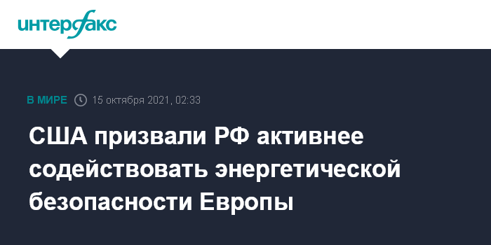 США призвали РФ активнее содействовать энергетической безопасности Европы