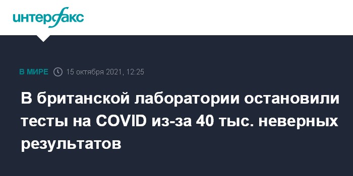 Москва. 15 октября. INTERFAX.RU - В частной лаборатории английского города Вулвергемптон приостановили тестирование на коронавирус после того, как более 40 тысяч результатов тестов оказались неправильными, сообщает в пятницу телеканал Sky News со ссылкой на Агентство безопасности здравоохранения Соединенного Королевства (UKHSA).