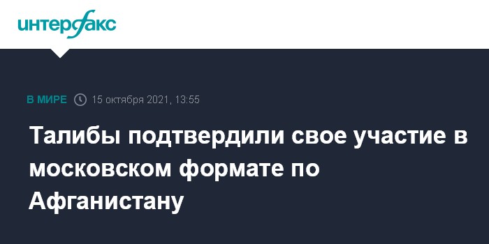 12 октября глава МИД России Сергей Лавров сообщил, что Россия рассчитывает на согласие движения "Талибан" принять участие во встрече в московском формате по Афганистану, проведение которой запланировано на 20 октября в российской столице.