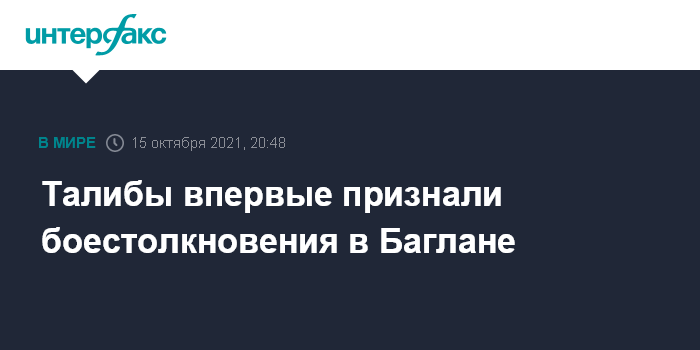 Москва. 15 октября. INTERFAX.RU - "Талибан" (движение признано в России террористическим и запрещено) впервые признал факт боестолкновений в долине Андараб (провинция Баглан, северо-восток Афганимтана).