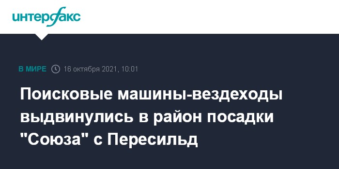 Поисковые машины-вездеходы выдвинулись в район посадки "Союза" с Пересильд