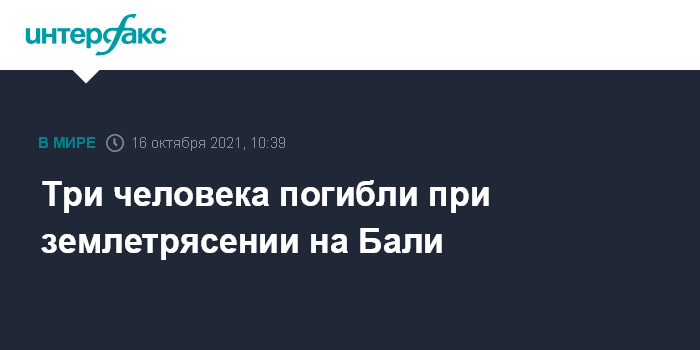 Москва. 16 октября. INTERFAX.RU - На индонезийском острове Бали произошло землетрясение, погибли трое человек и семеро получили ранения, сообщают в субботу западные СМИ.