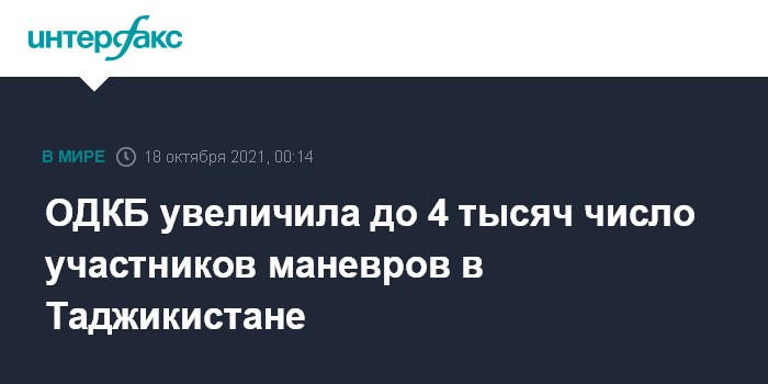 ОДКБ проводит 18-23 октября маневры в Таджикистане с учетом возможных негативных сценариев развития обстановки в Афганистане, заявил 14 октября начальник объединенного штаба ОДКБ Анатолий Сидоров.