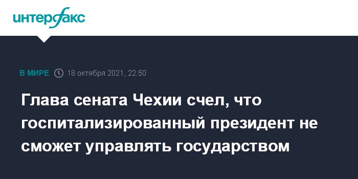 Глава сената Чехии счел, что госпитализированный президент не сможет управлять государством